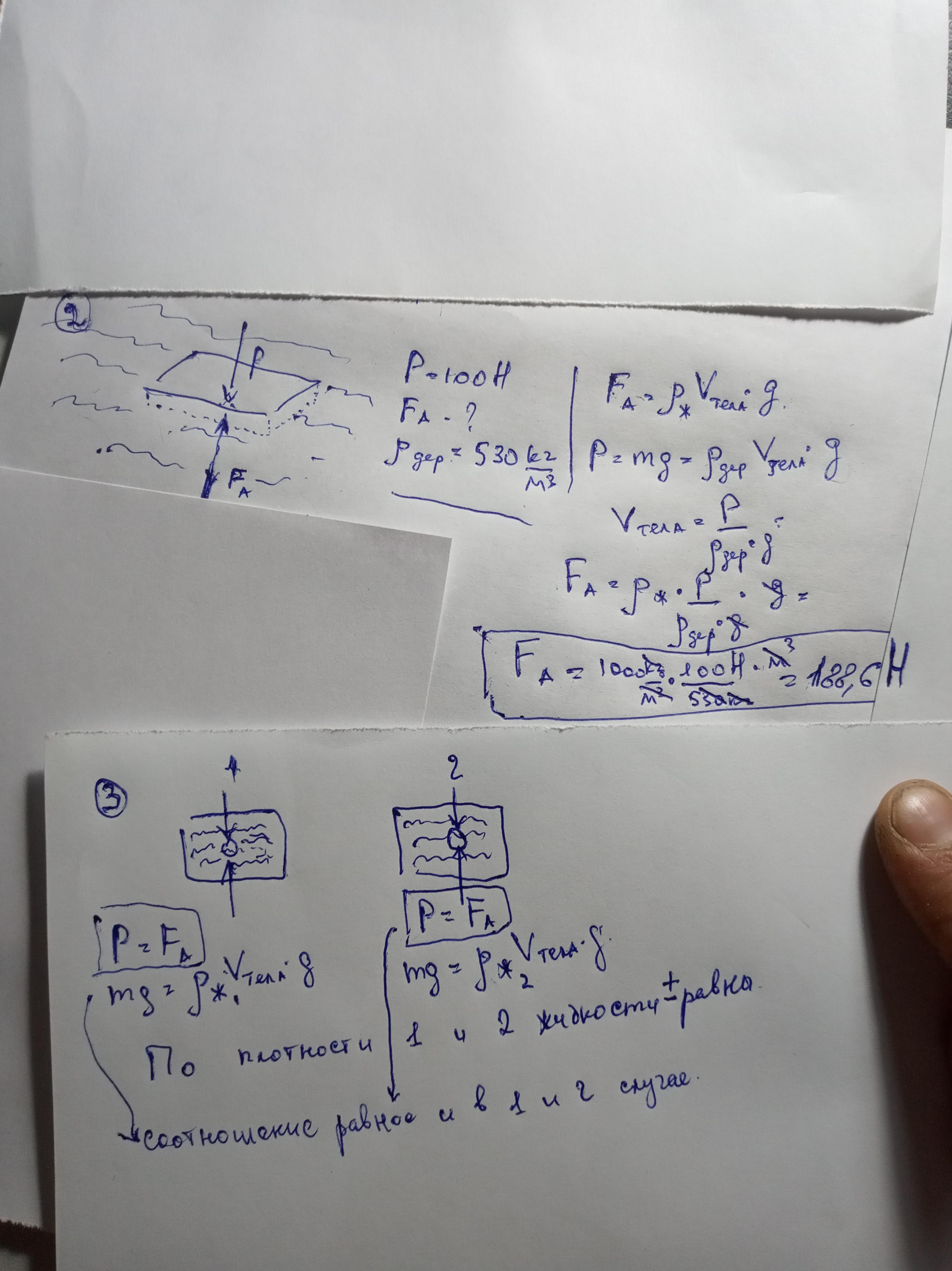 Каково соотношение между силой тяжести, действующей на тело, и архимедовой силой в каждом случае?