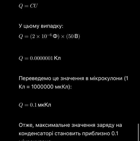 Відповідь подайте у мКл без зазначення одиниці вимірювання, через крапку.